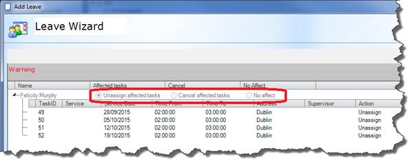 You are unable to remove a Leave record from a Staff Profile once it has been set to Approved. Only In Progress Leave records can be removed from a Staff Profile. This rule does not apply to Clients, Carers or Facilities. |